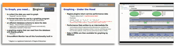 - Graphing in GroundWork Monitor — how we use Nagios plugin output, RRDs, and RRDtool to create a graphing solution